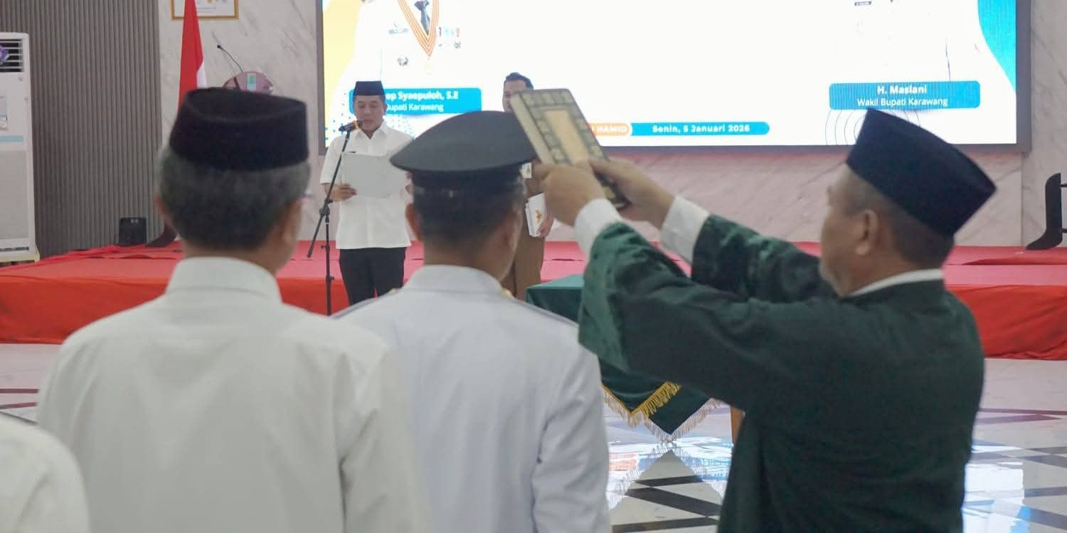 Hal tersebut disampaikan Bupati Karawang H. Aep Syaepuloh dalam Upacara Pengambilan Sumpah dan Pelantikan Pejabat Administrator, Pejabat Pengawas, dan Penugasan Tambahan di Lingkungan Pemerintah Daerah Kabupaten Karawang yang digelar di Aula Husni Hamid, Senin (5/1/2026).