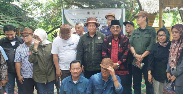 Tanjabbar – Bupati Tanjung Jabung Barat Drs. H. Anwar Sadat, M.Ag dampingi Direktorat Jendral Perhutanan Sosial Dan Kemitraan Lingkungan (Ditjen PSKL) Kementerian Lingkungan Hidup Dan Kehutanan (Kemen LHK), dalam rangka kunjungan lapangan lokasi Perhutanan Sosial Proyek Forest Programme II, di Desa Muara Danau, Kecamatan Renah Mendaluh, Kamis (2//6/2022).