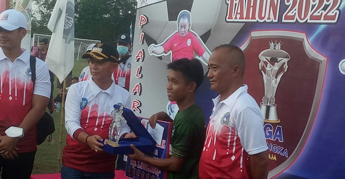 Bupati juga mengucapkan selamat kepada sang juara, yaitu ZED FC dari Desa Zed, Kecamatan Mendo Barat, sebagai juara Satu (1). Selain piala, mereka juga mendapatkan bonus sebesar Rp.15.000.000 (lima belas juta rupiah).