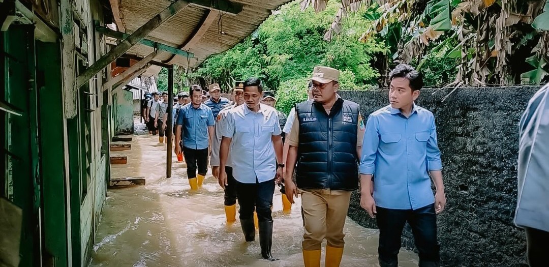 Karawang – Wakil Bupati (Wabup) Karawang, H. Maslani dan Sekretaris Daerah (Sekda) H. Asep Aang Rahmatullah, S.STP.,M.P mendampingi Wakil Presiden (Wapres) RI Gibran Rangkabuming meninjau langsung lokasi banjir di Kelurahan Tanjungmekar, Kecamatan Karawang Barat, Senin (19/1/2026).