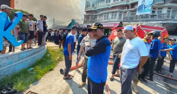 Kuala Tungkal – Bupati Tanjung Jabung Barat, Anwar Sadat, langsung turun memantau proses pemadaman kebakaran. di Jl. Sultan Thaha, lorong Banten, Kelurahan Tungkal IV Kota, Kuala Tungkal, Sabtu (7/10/2023). Setelah mendapat laporan.