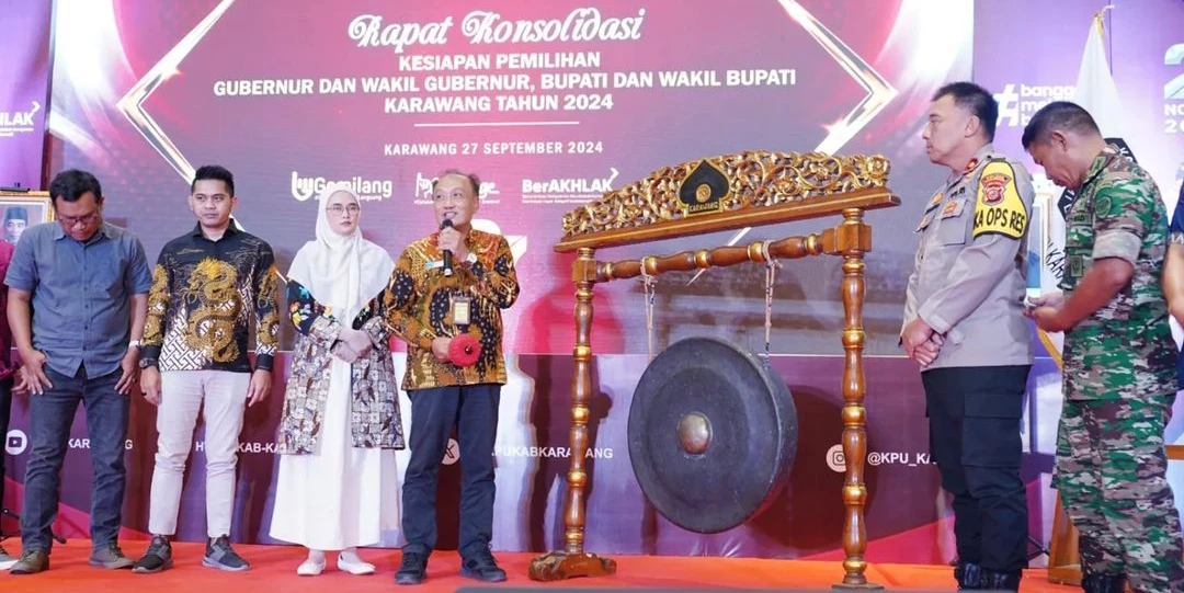 Karawang – Pjs. Bupati Karawang Teppy Wawan Dharmawan menghadiri Rapat Koordinasi (Rakor) Kesiapan Pilbup dan Pilgub Tahun 2024 yang diselenggarakan oleh KPU, di Ballroom Hotel Mercure Karawang, Jumat (27/9/2024).