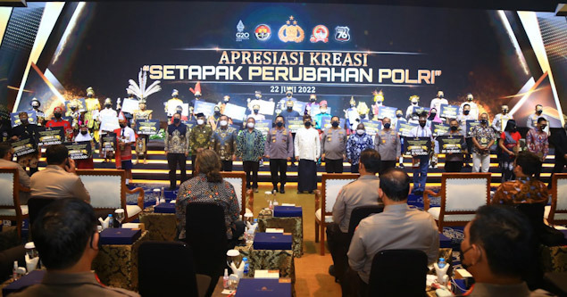 Jakarta – Polri menggelar kegiatan malam apresiasi kreasi ‘Setapak Perubahan Polri’ di Gedung Tribrata, Jakarta Selatan, dalam rangka memperingati Hari Bhayangkara ke-76 pada 1 Juli mendatang.