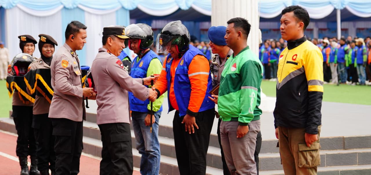 Jabar – Kapolri Jenderal Listyo Sigit Prabowo memimpin apel Ojek Online (Ojol) Kamtibmas ‘Sauyunan Jaga Lembur’, di Lapangan Upakarti, Soreang, Kabupaten Bandung, Jawa Barat (Jabar), Sabtu (8/11/2025). Kegiatan ini merupakan sinergisitas untuk saling menjaga keamanan di lingkungan masyarakat.