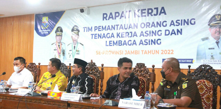Kepala Badan Kesbangpol Provinsi Jambi melalui Kabid penanganan konflik Kesbangpol H. Qamaruz Zaman, SE, MM menyampaikan, kegiatan ini dilaksanakan sebagai tindak lanjut rakor yang dilaksanakan sebelumnya, terkait pemantauanjumlah orang asing dan pergerakan orang asing baik itu terkait masalah investasi, mahasiswa dan lembaga asing di Provinsi Jambi.