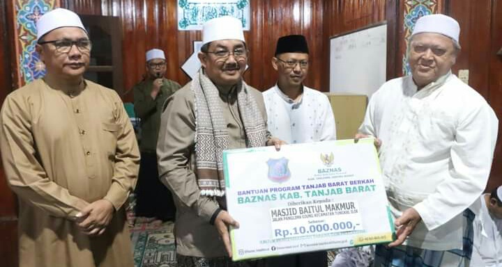 Dalam kesempatan tersebut, Bupati juga menyerahkan bantuan sebesar Rp. 10 juta dari Baznas Tanjung Jabung Barat untuk pengembangan sarana dan prasarana Masjid Baitul Makmur. Bantuan tersebut tidak hanya diperuntukkan bagi pengembangan masjid, namun juga disalurkan kepada anak yatim dan kaum dhuafa di sekitar Masjid Baitul Makmur.