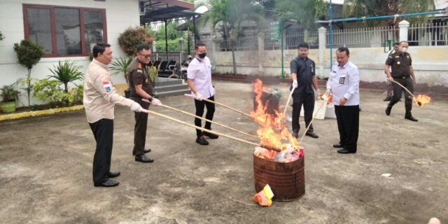 Wabup Hairan Hadiri Pemusnahan Barang Bukti Di Kejari Kuala Tungkal