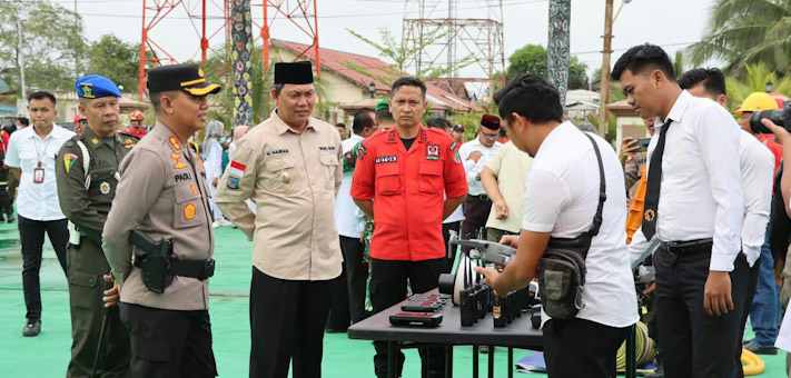 Kuala Tungkal – Wakil Bupati (Wabup) Tanjung Jabung Barat (Tanjabbar) H. Hairan, S.H, memimpin apel kesiapsiagaan penanggulangan Kebakaran Hutan dan Lahan (Karhutla), bertempat di lapangan Mapolres Tanjabbar, Rabu (15/2/2023).