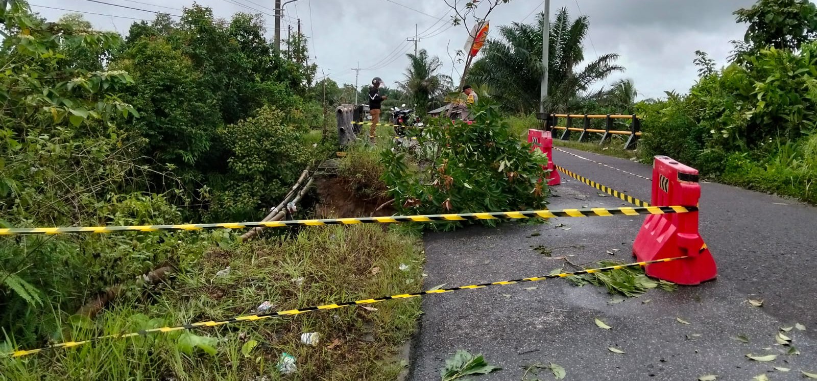 “Kita pasang rambu-rambu peringatan agar pengguna jalan berhati-hati, untuk penanganannya kami usulkan kepada Bupati lewat anggaran Belanja Tidak Terduga (BTT),” katanya.