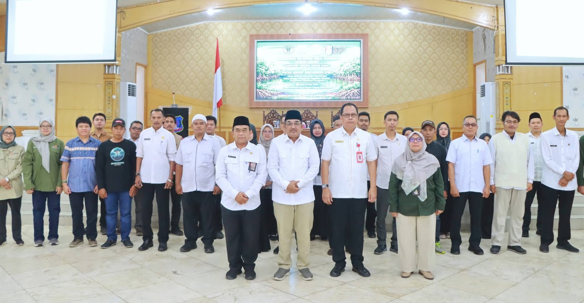 TANJAB BARAT – Bupati Drs. H. Anwar Sadat, M.Ag., menghadiri sekaligus mengukuhkan Kelompok Kerja Mangrove Daerah (KKMD) Kabupaten Tanjung Jabung Barat, yang dirangkaikan dengan Focus Group Discussion (FGD) lintas OPD dan pemangku kepentingan dalam rangka penyusunan regulasi daerah pengelolaan ekosistem mangrove, Rabu (1/4/2026).