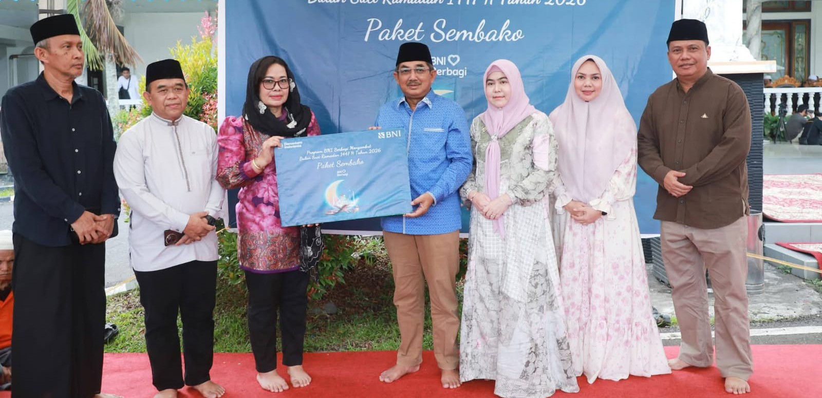 TANJAB BARAT – Bupati Tanjung Jabung Barat, Drs. H. Anwar Sadat, M.Ag., menerima secara simbolis bantuan paket sembako dari BNI 46 Cabang Kuala Tungkal dalam program “BNI Berbagi” menyambut Bulan Suci Ramadhan 1447 H. Penyerahan ini berlangsung di Rumah Dinas Bupati, Minggu (8/3). Bantuan tersebut ditujukan khusus bagi para petugas kebersihan dari Dinas Lingkungan Hidup (DLH) Kabupaten Tanjung Jabung Barat sebagai bentuk kepedulian sosial di bulan Suci Ramadhan.