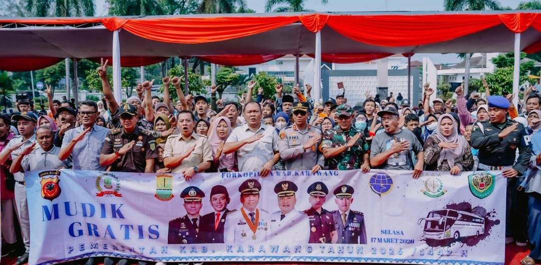 Karawang – Pemerintah Kabupaten (Pemkab) Karawang secara resmi melepas sebanyak 1.197 pemudik dalam program Mudik Gratis Tahun 2026. Pelepasan Program Mudik Gratis Tahun 2026 dilaksanakan di Halaman Kantor Pemda oleh Bupati dan Wakil Bupati Karawang, Unsur Forkopimda, Sekretaris Daerah dan jajaran lainnya, Selasa (17/3/2026).