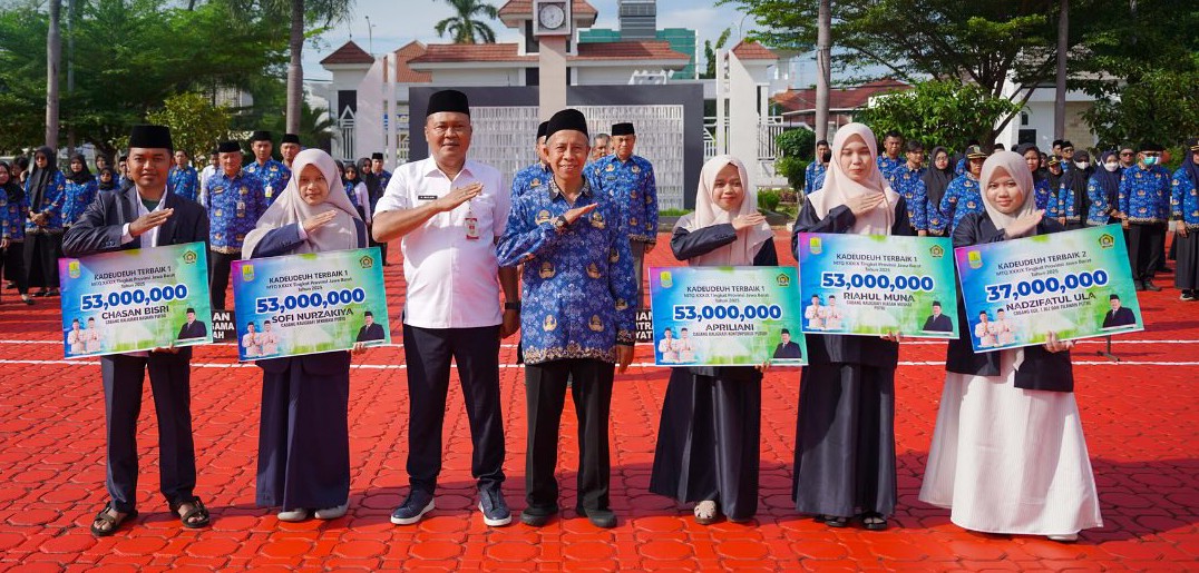 Karawang – Pemerintah Kabupaten (Pemkab) Karawang memberikan penghargaan dan apresiasi berupa kadeudeuh kepada para peserta Musabaqoh Tilawatil Qur’an dan Hadits (MTQH) ke-39 Tingkat Provinsi Jawa Barat (Jabar) Tahun 2025, bertempat di Plaza Pemda, Senin (17/11/2025).