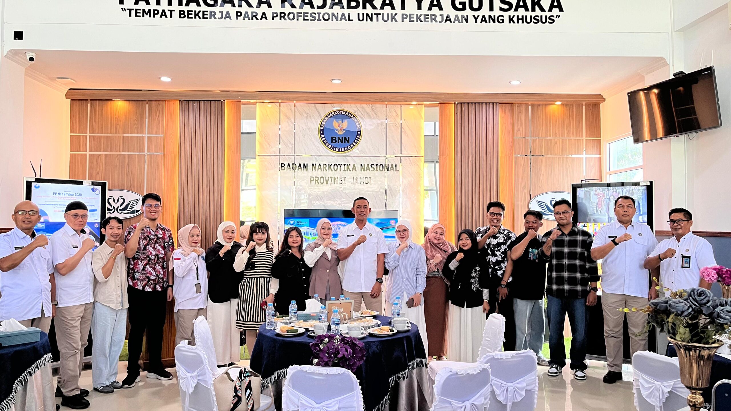 Jambi – Dalam upaya meningkatkan kesadaran masyarakat tentang bahaya narkotika BNN Provinsi Jambi gandeng Influencer dan Konten Kreator di lingkup Provinsi Jambi bersinergi dalam pencegahan dan rehabilitasi penyalahguna narkotika.