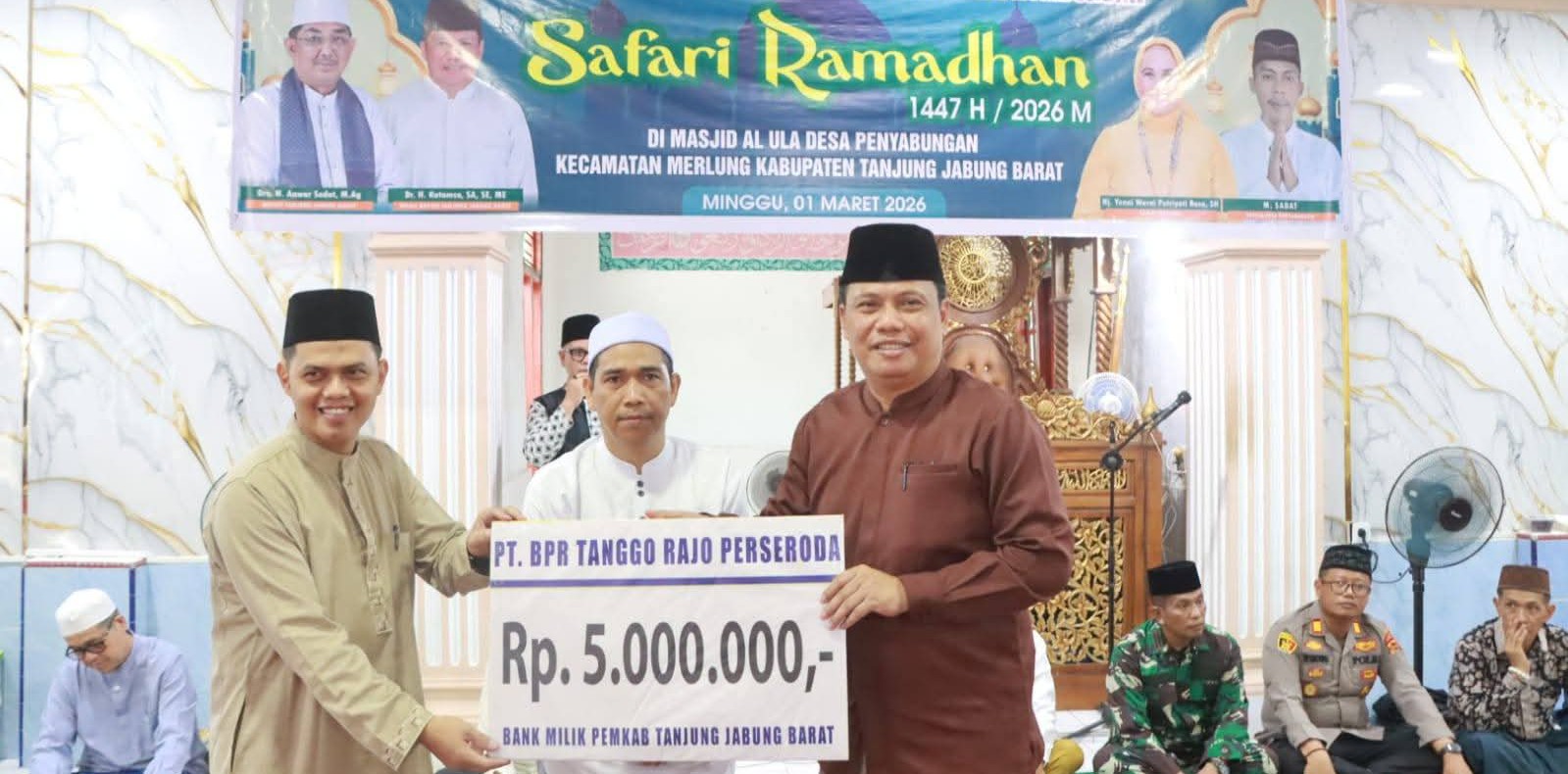 TANJAB BARAT – Pemerintah Kabupaten (Pemkab) Tanjung Jabung Barat (Tanjab Barat) menggelar Safari Ramadan di Masjid Al-ULA, Desa Penyabungan, Kecamatan Merlung, Minggu (01/03). Kegiatan ini menjadi ajang silaturahmi sekaligus penyampaian program pembangunan kepada masyarakat.